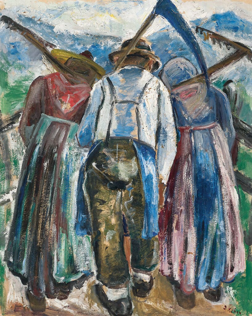 Avec la modernité du début du 20e siècle, les artistes projettent leurs tourments et le tragique de leur époque. Avant la Première Guerre mondiale, les expressionnistes du «Cavalier bleu» passent leur été à Murnau en Bavière: animaux, douceur des cimes et spiritualité sont de mise chez Kandinsky, Franz Marc et Marianne von Werefkin. A contrario, Ernst Ludwig Kirchner, le maître du mouvement dresdo-berlinois «Le Pont», «réfugié» à Davos à cause de la Grande Guerre, peint des Alpes plus acides: on y sent de l’enfermement dû à sa psychologie et à sa peur du nazisme.