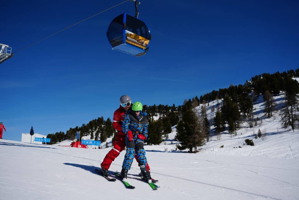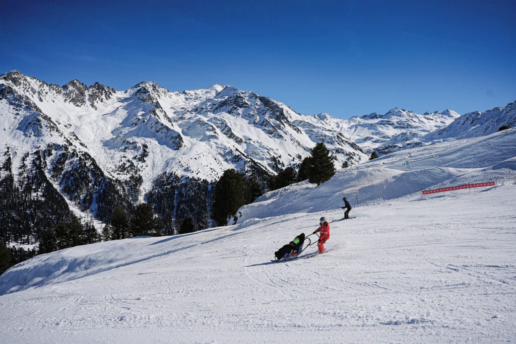 Puis vient le moment de changer de registre: on détache les sangles, on réinstalle Jules dans le «bob» – la partie avant dans laquelle s’assied l’élève –, et la journée bascule vers le dual-ski. Après quelques vérifications des fixations, les voilà lancés. Piste bleue: le dual-ski dessine des courbes larges et propres, Florian derrière, pilote attentif. Jules, lui, se marie au mouvement. Son rire arrive par vagues, surtout quand la neige fait vibrer l’engin. Piste rouge: un peu plus vite, un peu plus loin.