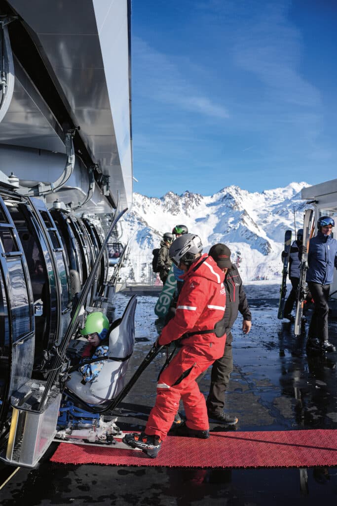 Au télésiège, l’envers du décor se révèle. Florian essaie une remontée qu’il croyait impraticable avec un dual-ski. La veille, il remarque qu’en desserrant une vis au milieu de l’assise, l’espace se libère. «On va voir si ça passe», lance-t-il avec une pointe d’appréhension. Son élève et lui passent sous une rubalise et attendent de côté. Le moniteur échange quelques mots avec la personne qui encadre les départs le temps qu’Olivier franchisse le portique comme tout le monde. A l’approche de l’embarquement, la figure rouge de l’ESS relève le siège du bob: Jules se retrouve presque debout le temps que le télésiège arrive à hauteur.