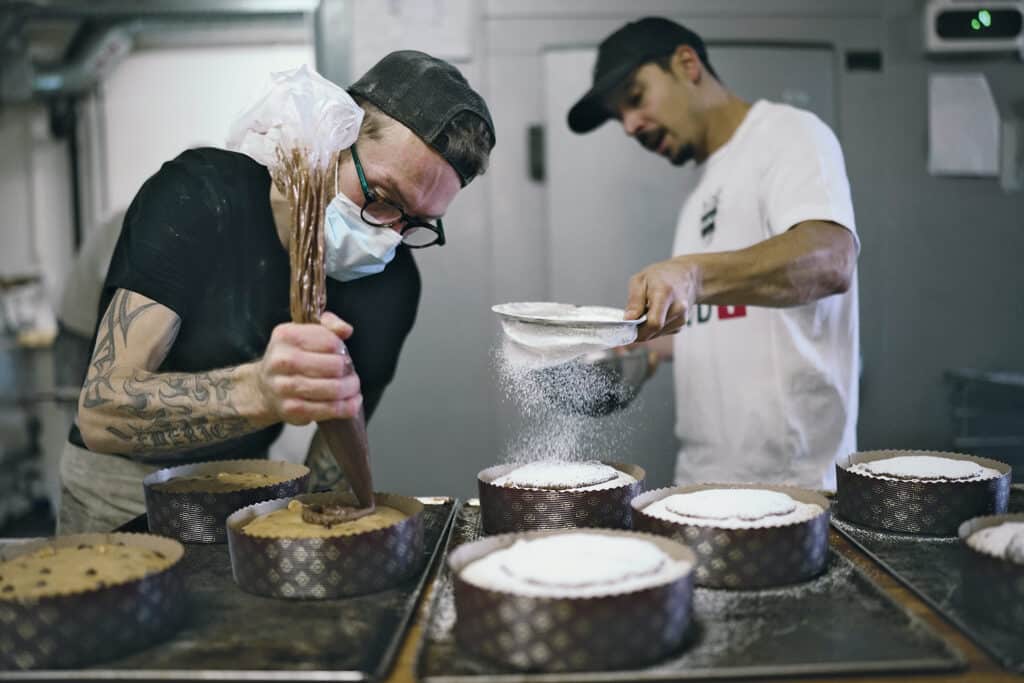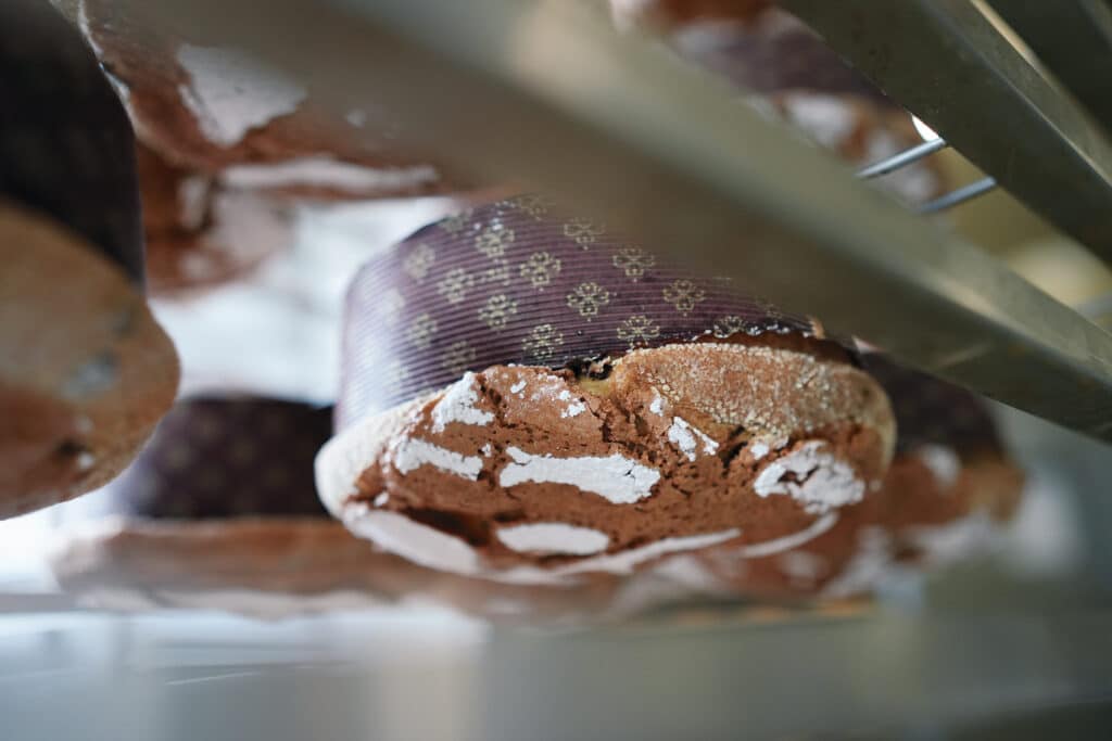 Pendant un peu moins d’une heure, les panettones cuisent tranquillement. De l’autre côté de la porte du four, le responsable du laboratoire s’agite. Il craint qu’ils ne gonflent pas assez. Ont-ils mis trop de macaronade?