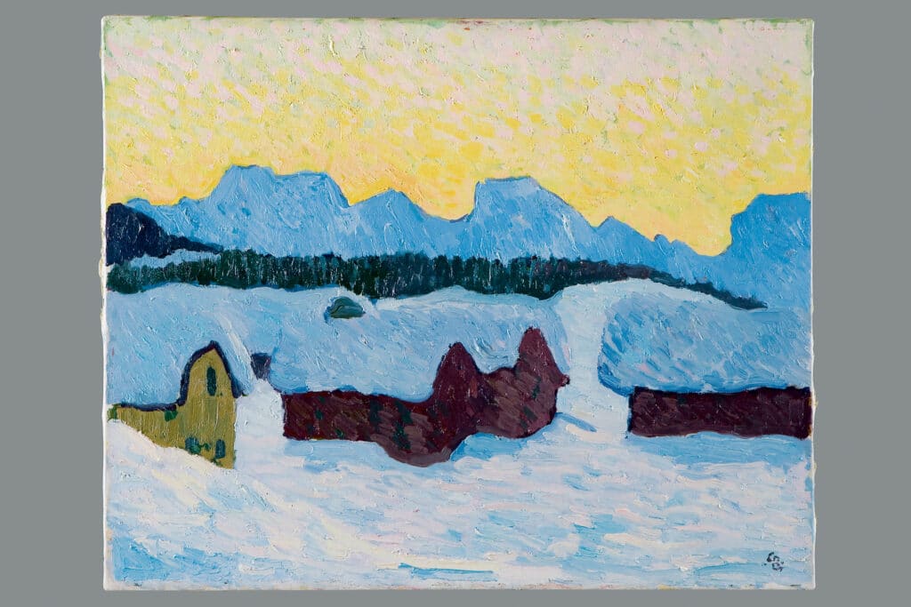 Le divisionnisme voit Oscar Lüthy marcher dans les pas inspirés de Segantini avec le superbe Requiem dans les Alpes (Vue du Weisshorn depuis le Gornergrat), réalisé en 1909. Alexandre Perrier diffuse sa délicatesse dans des toiles lémaniques à la texture raffinée. Ernst Geiger, Erich Erler et Waldemar Fink ne semblent pas vouloir descendre des alpages: c’est qu’ils y ont trouvé matière à lumières!